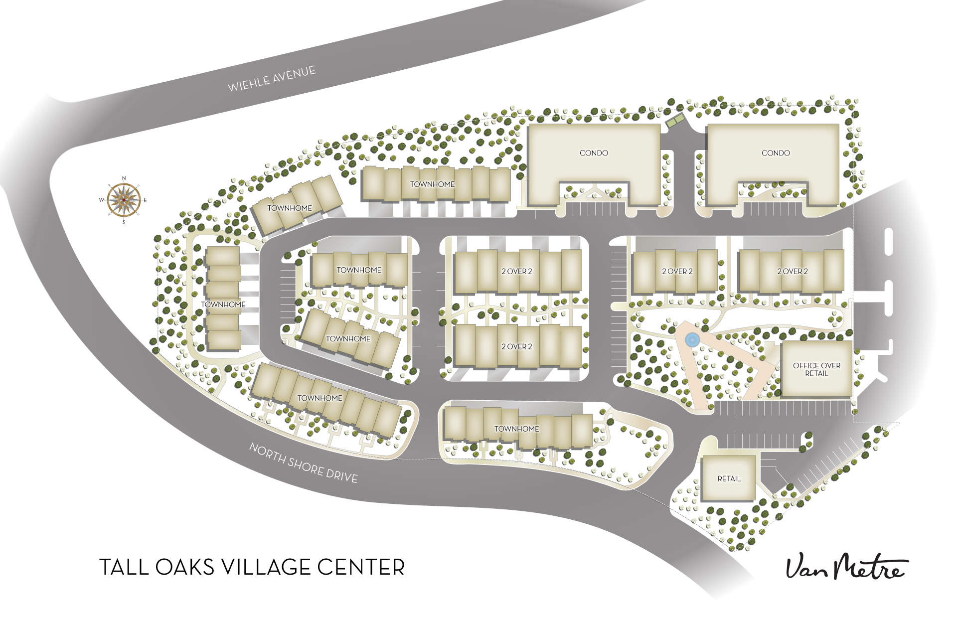 Built in 2010, Tall Oaks Village Center is a multi-building complex consisting of one and two-story buildings. The center is brand new construction with a 156-unit Stanley Martin residental community slated to deliver in the next few years. Van Metre manages the commercial property consisting of a two-story office building with 5,431 SF available and a 4 retail suites between 1,288 and 5,431 SF available.